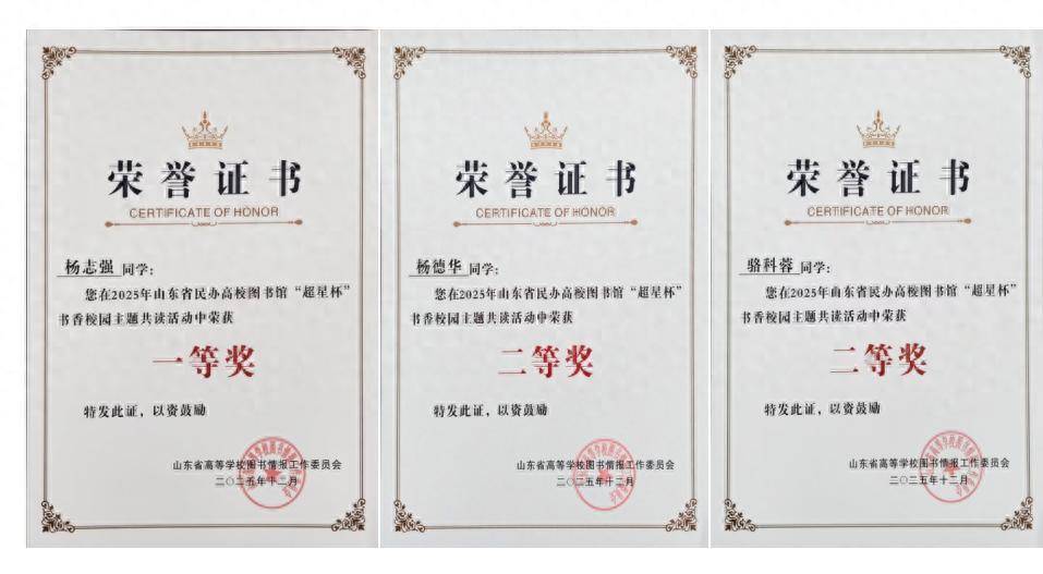 近日,由山东省高档学校典籍谍报责任委员会摆布的首届山东省民办高校藏书楼“超星杯”书香校园主题共读活动告成终结。王人鲁医药学院参赛学生凭借塌实的阅读积淀与长远的感悟抒发脱颖而出,最终斩获一等奖1项、二等奖2项、优秀奖3项。