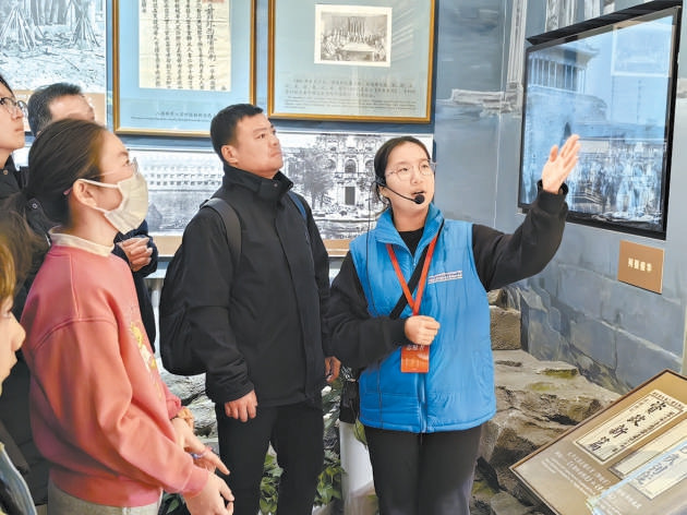 王雨晨(右一)正在向旅客西席鼎新历史。