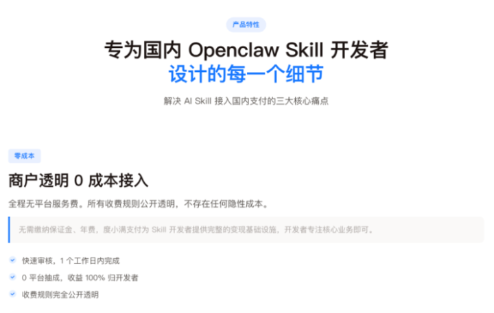 跟着越来越多的Skill开垦者但愿将我方的工作生意化,若何安全合规地收取用度、若何简化支付接入成为了他们面对的贫瘠。
