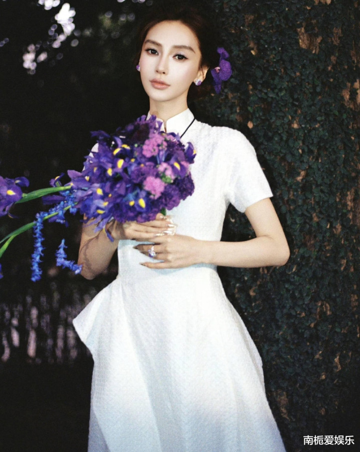杨颖提前一个月邀请影相师金白开掌镜,并反复强调“这是拍给粉丝看的礼物”。拍摄时代,影相师因垂危失慎从高凳摔落,她第一时代向前搀扶并和煦饱读吹“不遑急渐渐来”,其亲和立场被赞“内娱宠粉天花板”。写照以白色新考取长裙为主,立领盘扣络续传统旗袍骨架,垂坠绸缎与当代剪裁裙摆和解,造成流动线条;紫罗兰主题连气儿细节,发间簪鲜花、手捧紫色鸢尾花束、辅导紫翡珠宝,构建“白裙映紫兰”的诗意画面。