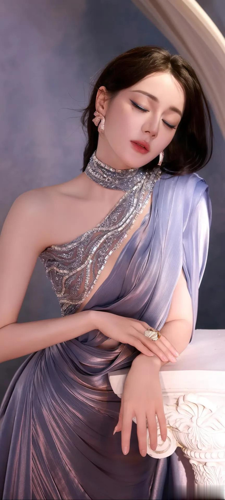 真钱三公 杨颖37岁寿辰写照曝光, 紫罗兰搭配白色旗袍惊艳全网