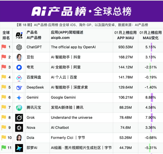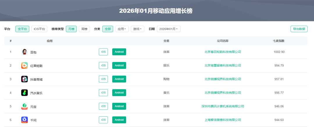 始于2014年的春节红包营销,之是以历经多年仍被大厂沿用,除契合春节浮滥场景外,其强用户感知、高布置裂变的属性,使其成为现时AI行业高获客资本配景下的最优拉新旅途之一。举例,豆包、元宝、千问在2026年1月移动应用增长榜中,分辨位列TOP1、TOP5、TOP6。