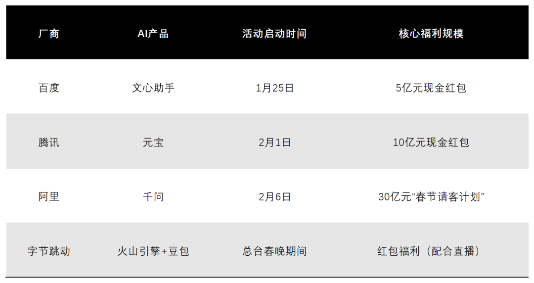 当豆包、元宝、千问、文心一言携巨资涌入这场全民狂欢,名义上是布置裂变、场景免单的玩法之争,背后折射的却是环球C端AI买卖化的集体荒诞与解围尝试。
