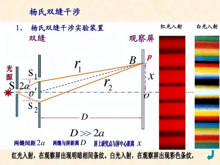 因为光波在通过两条平行舛误后,会发生自我插手气候:当两列光波的波峰与波峰相遇时,亮度就会增强,变成亮条纹;当波峰与波谷相遇时,亮度就会收缩,变成暗条纹,恰是这种插手作用,才在幕布上呈现出了明暗相间的章程条纹。