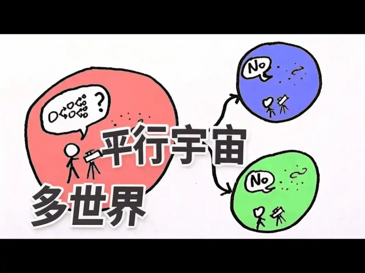 咱们不错遐想一下,当咱们测量一个电子的时候,整个这个词六合就会区别成无数个平行的六合。