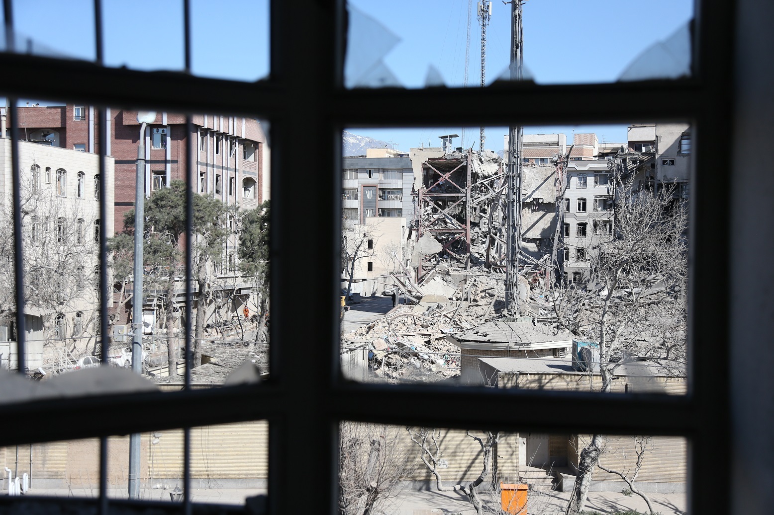 在伊朗德黑兰拍摄的一处在伏击中受损的树立。