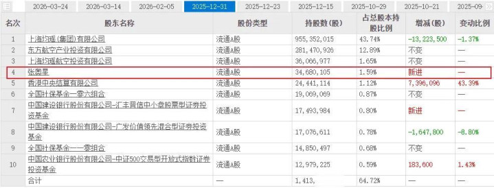 在这份名单里,除了上海均瑶、东航产投两大鼓励外,前五大鼓励中唯有张奥星是簇新相貌。