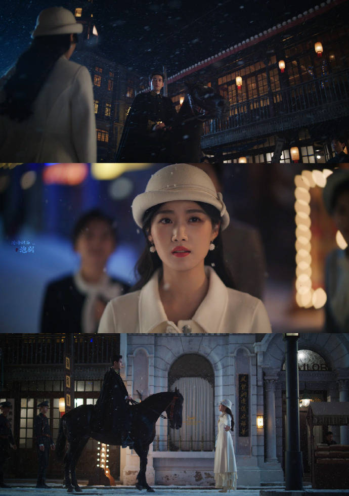 不得不说,这剧的镜头好意思学太惊艳了!雪中对视、军装骑马等名时事,构图号称一绝。一高一低的站位,蓦地让宿命感爆棚,光影和氛围完全是电影质感,等闲截个图都能当壁纸。